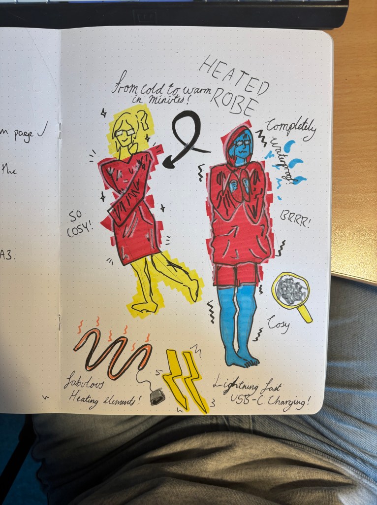 We then came up with some further ideas on how the product would work, as well as a few other ideas independently that we might also want to pursue.