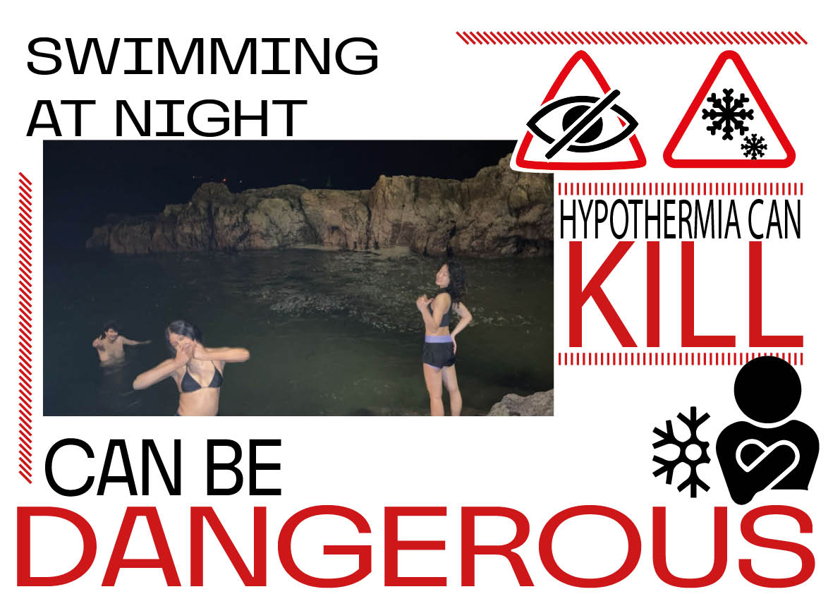 Although the water was cold, it was within a completely safe temperature range on this occasion; however, cold water can pose a serious risk for extreme swimmers – even more so at night. The cold water can cause muscles to contract, and if you aren’t careful, there is a real risk of not being able to move from shock.