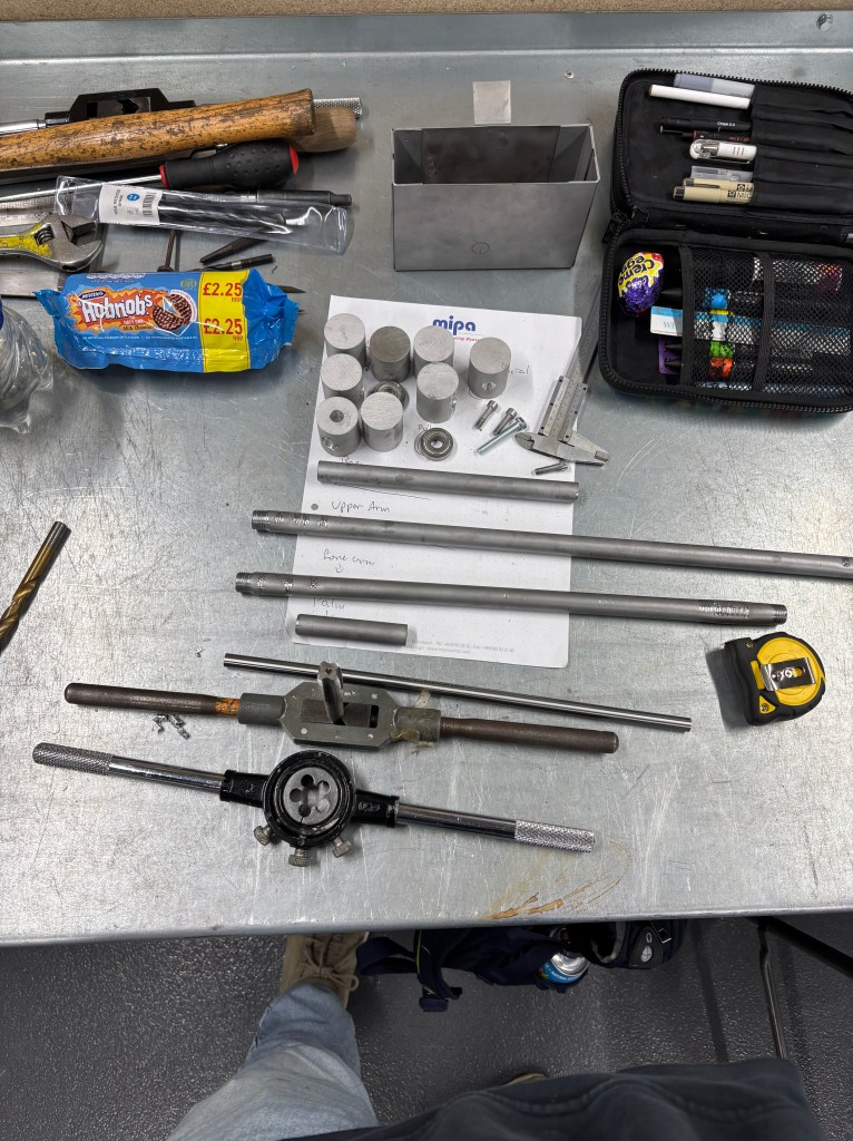 Having no choice but to work around the blunder, I opted to switch to aluminium pipe for the axle. This decision added the benefit of a pre-manufactured hole, so I wouldn’t need to drill before tapping.