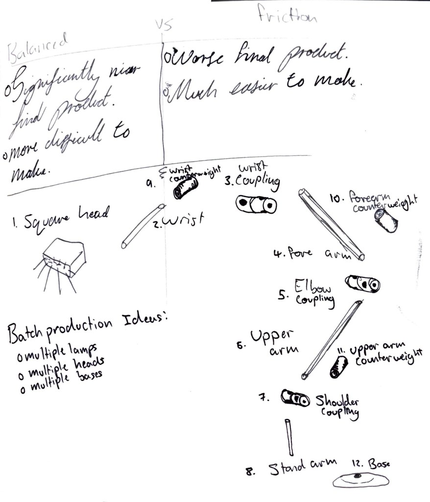 I originally aimed to have counterweights that would help with the balance of the lamp. These would not make it to the final design however, as the additional weight for the motor controlling the bottom hinge would have been too great, and the lamp was already getting heavy.