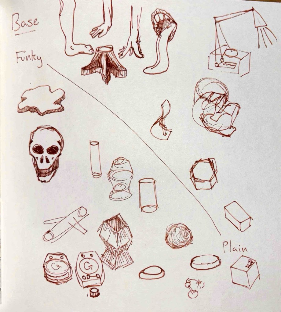 This project was always ambitious – but making 5 of these lamps would be basically impossible. Because I still require 5 products, however, I have come up with a few more designs for bases the lamp could attach to.